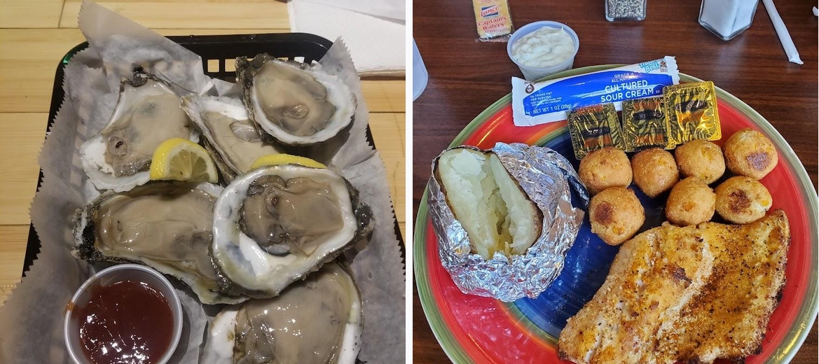 Clam Diggers Seafood specializes in seafood dishes, offering a wide variety of options that include crab legs, fresh sea scallops, and flounder sandwiches.